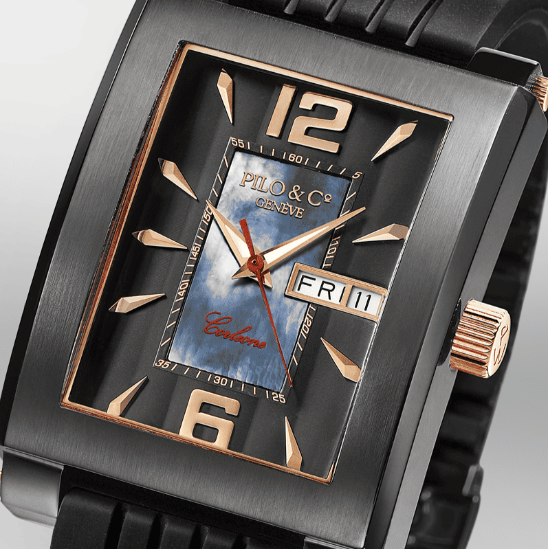 The Corleone marks a turning point for Pilo & Co Genève, embracing the codes of the luxury sport watch while remaining true to Swiss watchmaking tradition. Designed for a confident, masculine presence on the wrist, it combines strong geometry with everyday practicality. Paired with a black silicone strap, this Swiss automatic watch delivers comfort, durability and a contemporary sport-driven character suited for active lifestyles.