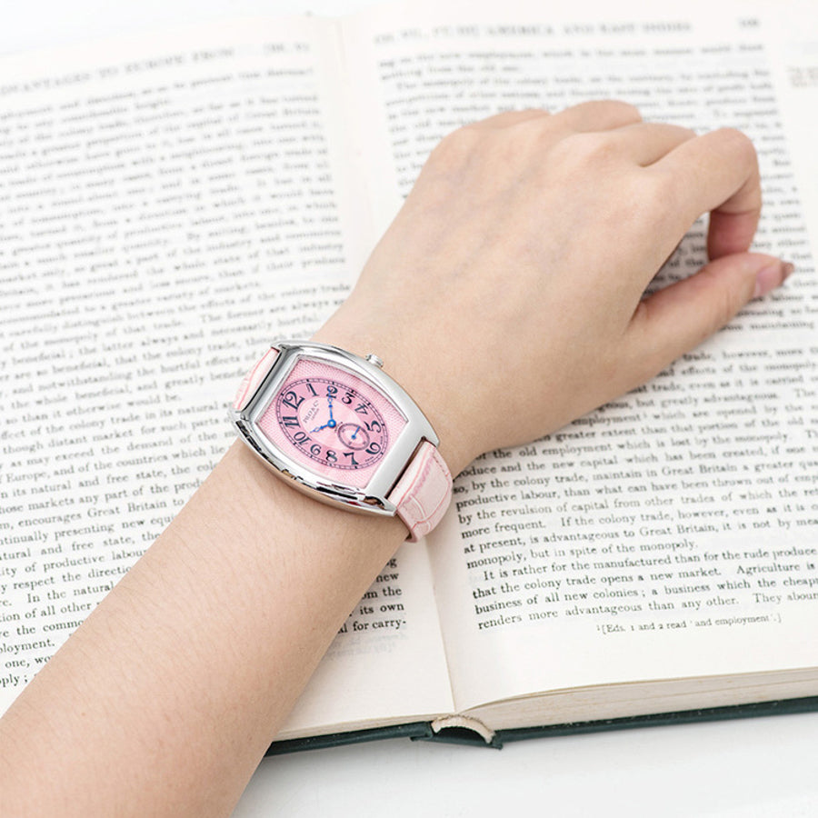 El Invidia se define por su silueta esculpida y curva, audaz y a la vez refinada. Su caja en forma de tonel ofrece una presencia distintiva en la muñeca, con proporciones que equilibran comodidad y carácter. La esfera guilloché, enmarcada por números arábigos alargados, le otorga al reloj su identidad inconfundible. Cada color (negro, azul, blanco o rosa) aporta una actitud diferente a un diseño contundente.