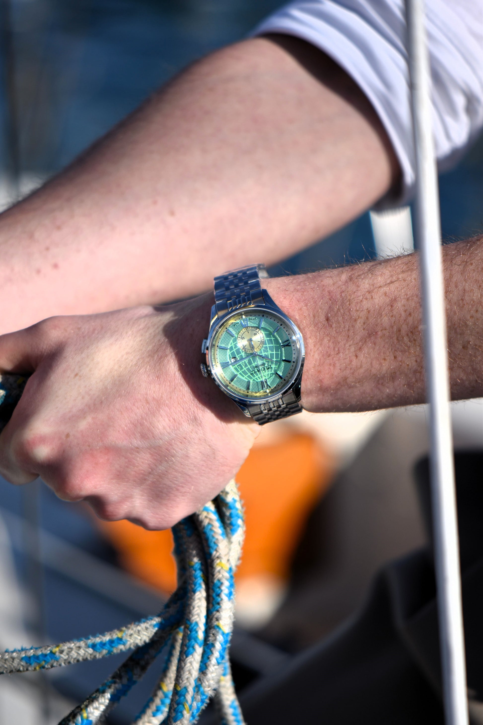 Un sous-cadran à 6 heures, faisant écho à la cala maestra cachée, la baie secrète de l'île.