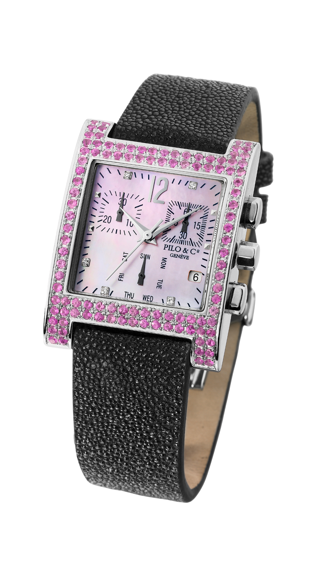 The Illusione Pink Sapphire by PILO & CO Genève is a radiant expression of elegance, strength, and glamour. Designed to dazzle, this timepiece celebrates the art of watchmaking through precious materials, expert craftsmanship, and a striking sense of style.