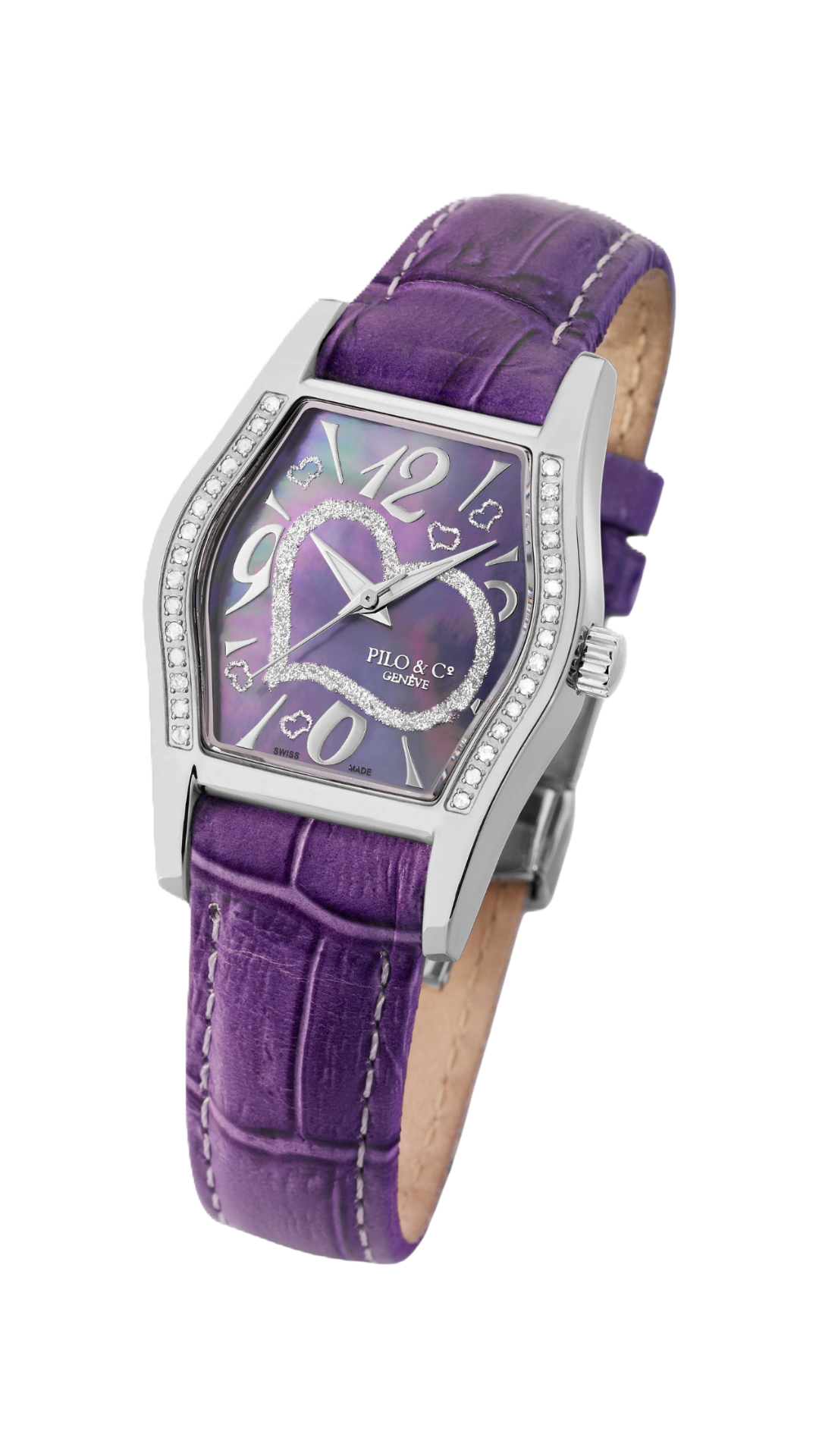 - Mother-of-pearl dial with diamond heart detail