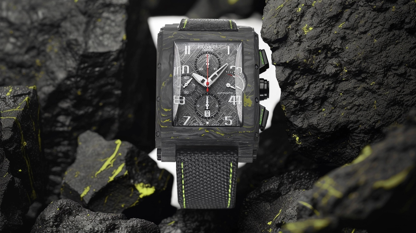 The name is rooted in transformation. Evoluzione speaks to evolution, the idea that even a meteorite, after millions of years hurtling through space, can be reshaped into something timeless. That same spirit of transformation is in the forged carbon case: high-tech, ultra-light, and sculpted for performance.