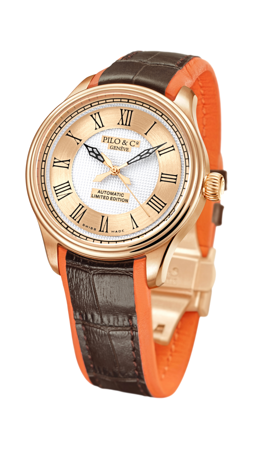 The “Pilo & Co Genève” brand signature and “Automatic Limited Edition” labels take the form of two miniature plaques adorning the innermost surface of the dial. They stand proud of the clou de Paris guilloché decoration, itself framed by a hollow-centred hour ring punctuated with Roman numeral markers. A second double-circle enhances the three-dimensional effect of the Extraneō and the dial’s reliefs. The newest timekeeper thus embodies the intrinsically Helvetian eye for good measure and a wholesome respect for classic Swiss watchmaking, especially noticeable in the traditional dial-up casing method employed for the caliber.