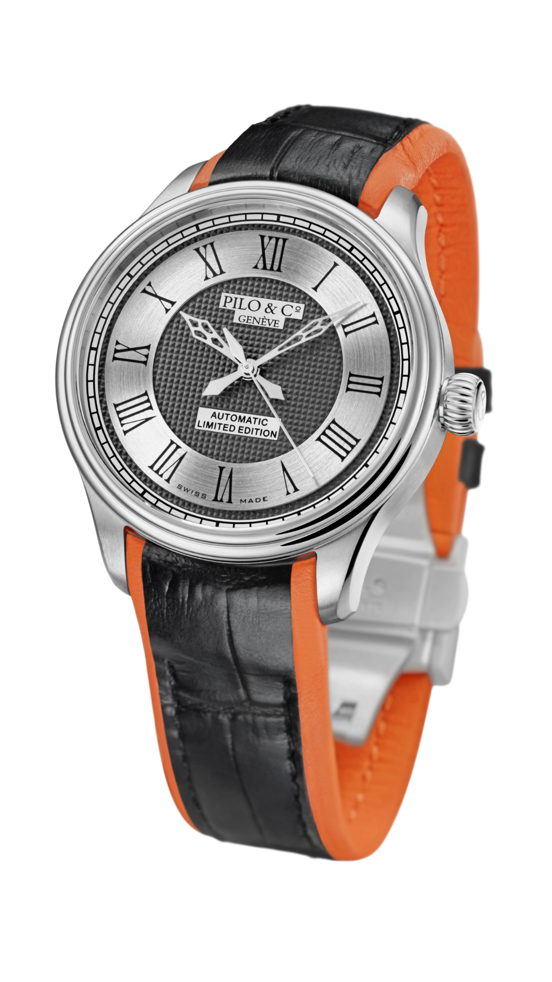 The “Pilo & Co Genève” brand signature and “Automatic Limited Edition” labels take the form of two miniature plaques adorning the innermost surface of the dial. They stand proud of the clou de Paris guilloché decoration, itself framed by a hollow-centred hour ring punctuated with Roman numeral markers. A second double-circle enhances the three-dimensional effect of the Extraneō and the dial’s reliefs. The newest timekeeper thus embodies the intrinsically Helvetian eye for good measure and a wholesome respect for classic Swiss watchmaking, especially noticeable in the traditional dial-up casing method employed for the caliber.