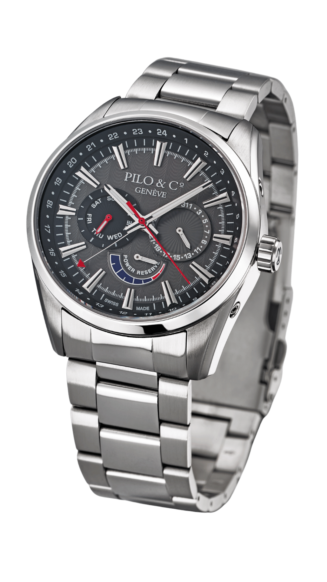 - Functions: Day, Date, Power Reserve, GMT, Hour, Minute, Second