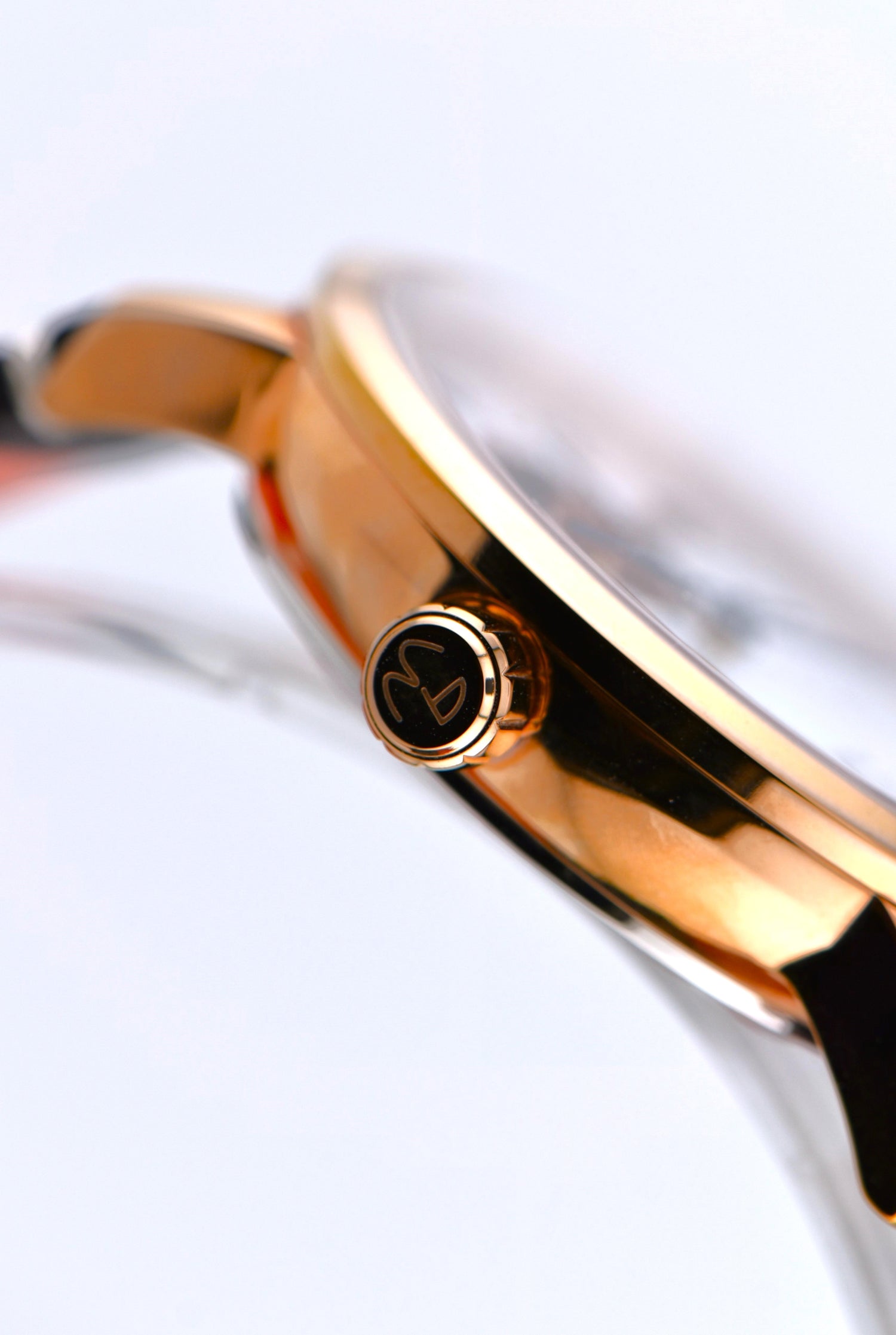 The Italian hand-stitched leather strap delivers exceptional comfort while adding a refined, masculine finish to the watch’s contemporary profile.